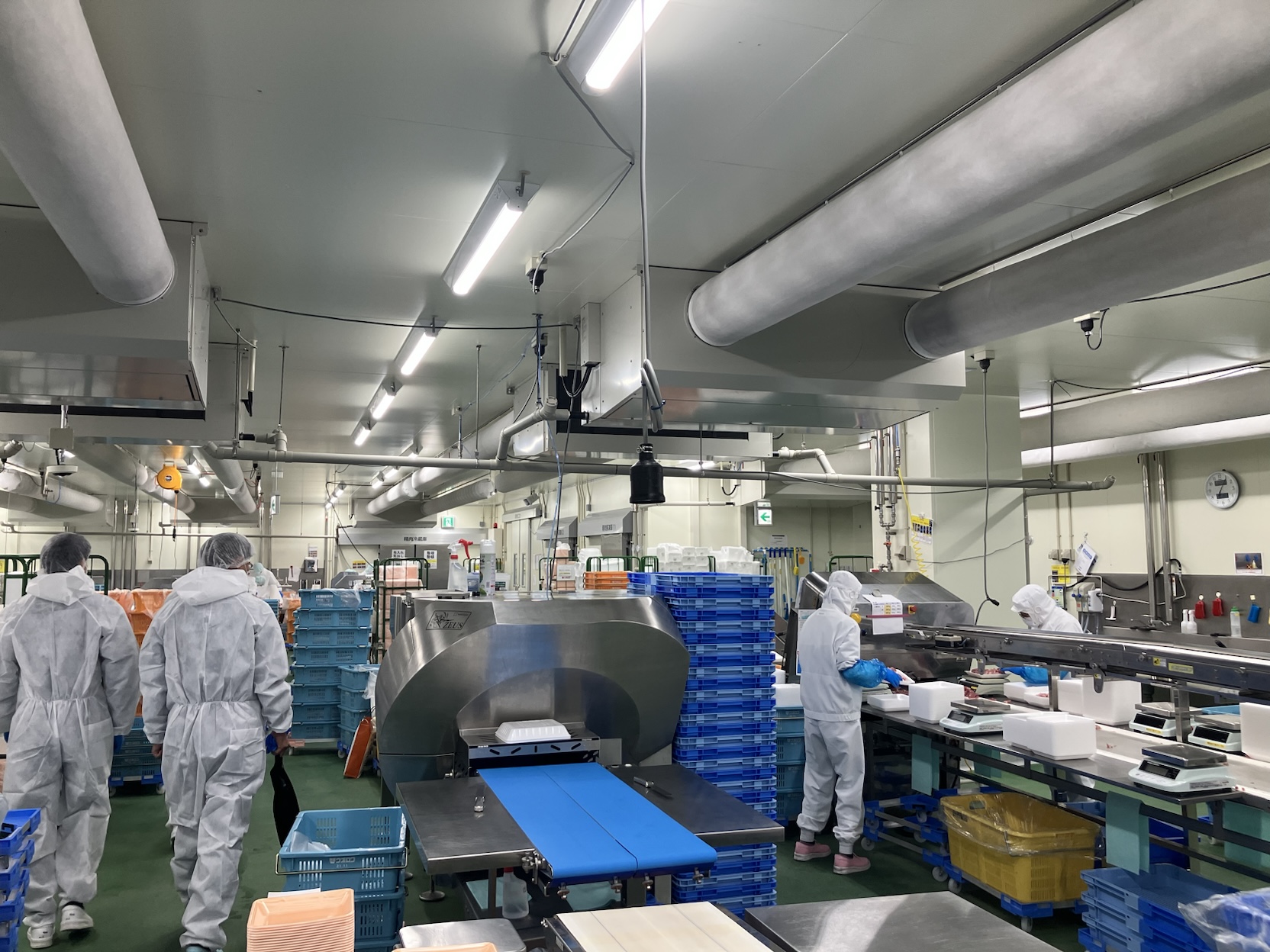精肉では、1日平均4.3万パック、ピーク時には7万パック程度の生産規模です。