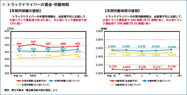 While the overall working population continues to decline, long working hours and low wages are further accelerating the shortage of truck drivers.