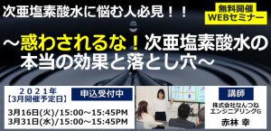 【好評につき3月も開催!無料Webセミナーのお知らせ】“惑わされるな!次亜塩素酸水の本当の効果と落とし穴”