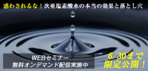 【Webセミナーオンデマンド配信開始のお知らせ】“惑わされるな!次亜塩素酸水の本当の効果と落とし穴”