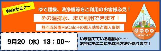 【9/20(水)開催!Webセミナー】熱回収装置ReCalo+の導入効果と導入事例