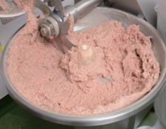 The combination of knife speed, bowl speed, and number of knives enables quick cutting of a wide range of food materials from livestock meat, poultry, fish, vegetables, to various prepared foods.