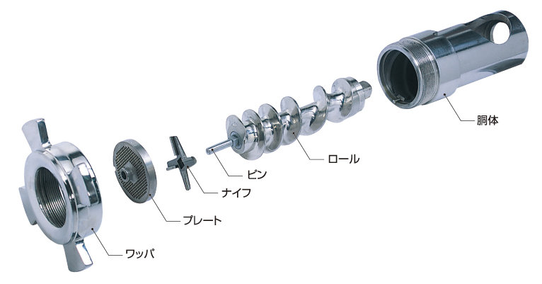 With special emphasis on hygiene, stainless steel is used for the auger, body, hopper, main unit, and legs. Resistant to corrosion and rust, and easy to clean after use.