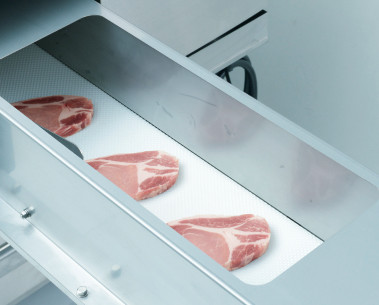 • Freely arranges fixed-weight items on conveyor with customizable continuous or intermittent slice count and intervals.